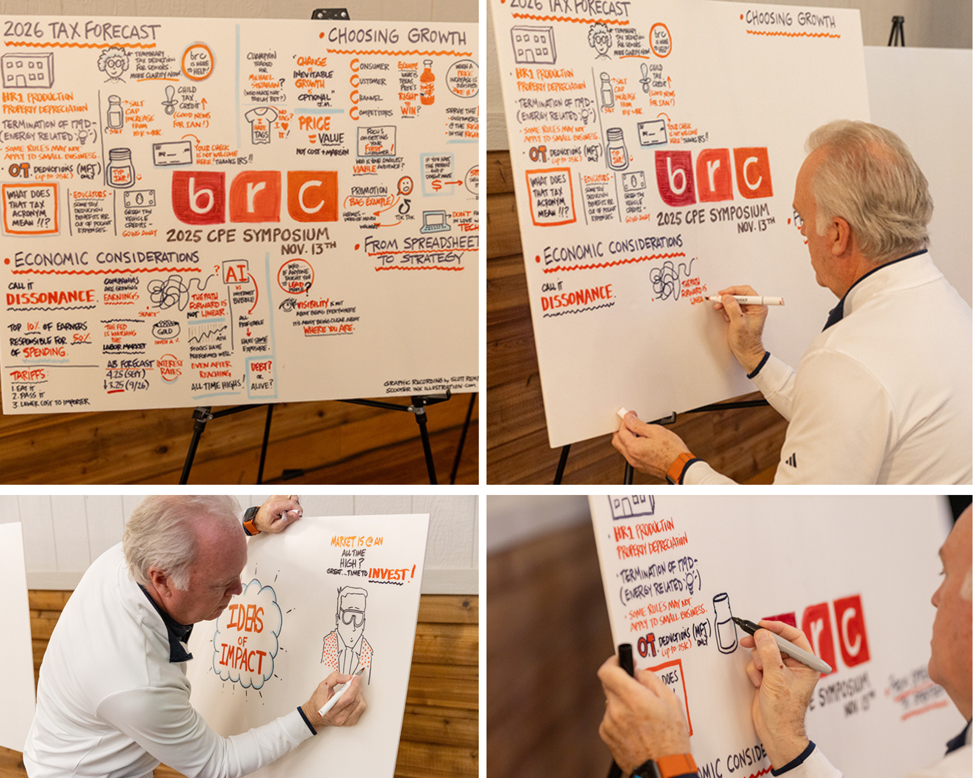 The day featured dynamic presentations on business strategy, economic trends, leadership, ethics, and more. Graphic Recording Illustrator Scott Rempe joined us to visually capture the event’s key insights.